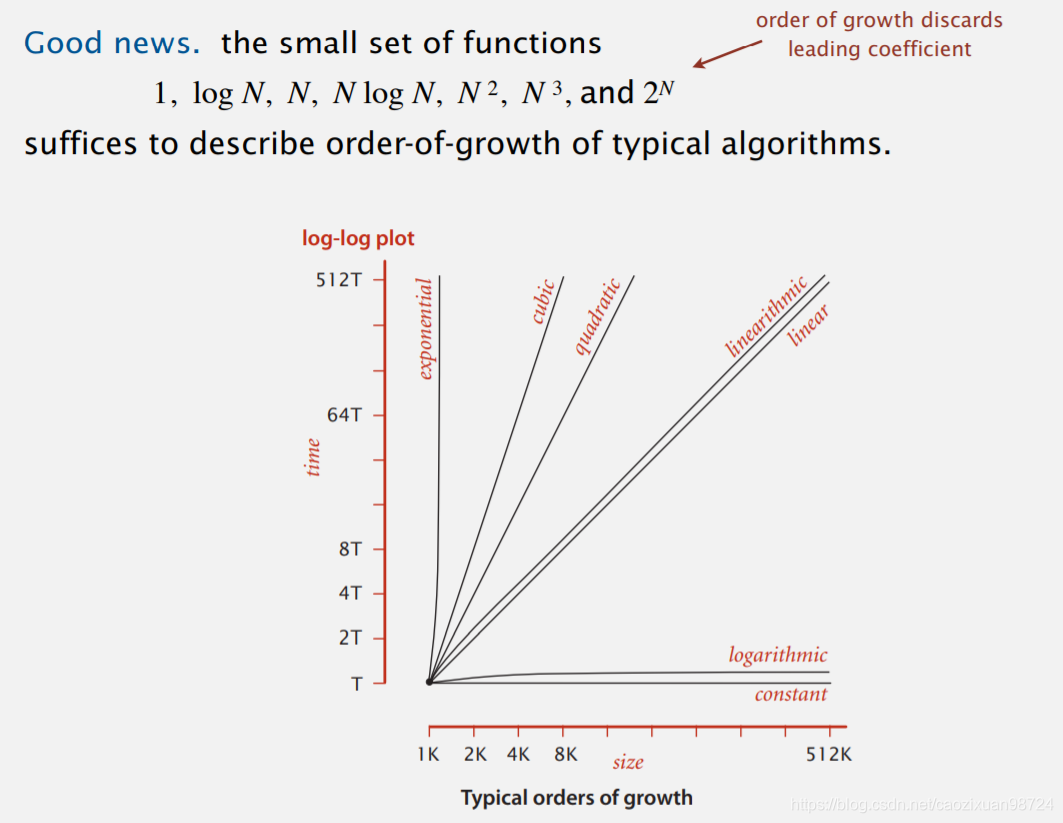在算法时间复杂度分析中,我们常用log-log plot去衡量时间复杂度,即横坐标为logN(N为问题规模),纵坐标为logT(T为时间频度)