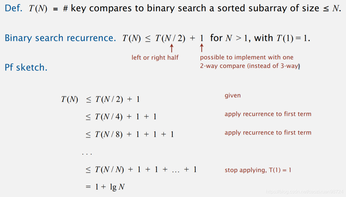 在有序数组中,我们最多比较1 + lg N次即可得到最终的结果。